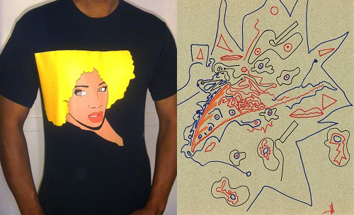 | Left: Lalah Hathaway T-shirt by Son of Ellis. Right: Untitled line drawing by Lalah Hathaway (2004). |