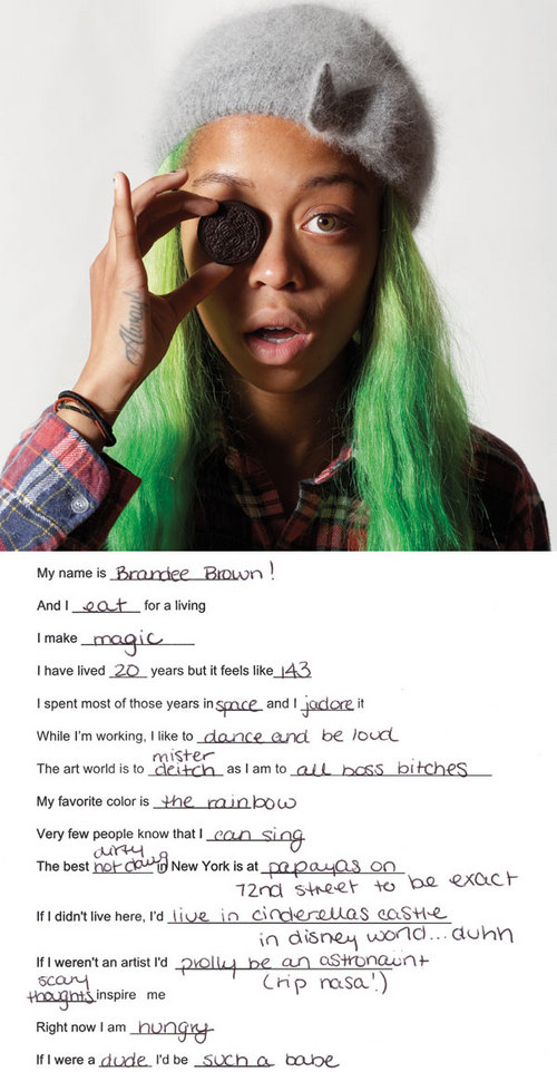 Paper Magazine's November 2011 "Art Issue" listed Brandee Brown as "one of 11 young artists shaking things up in New York."